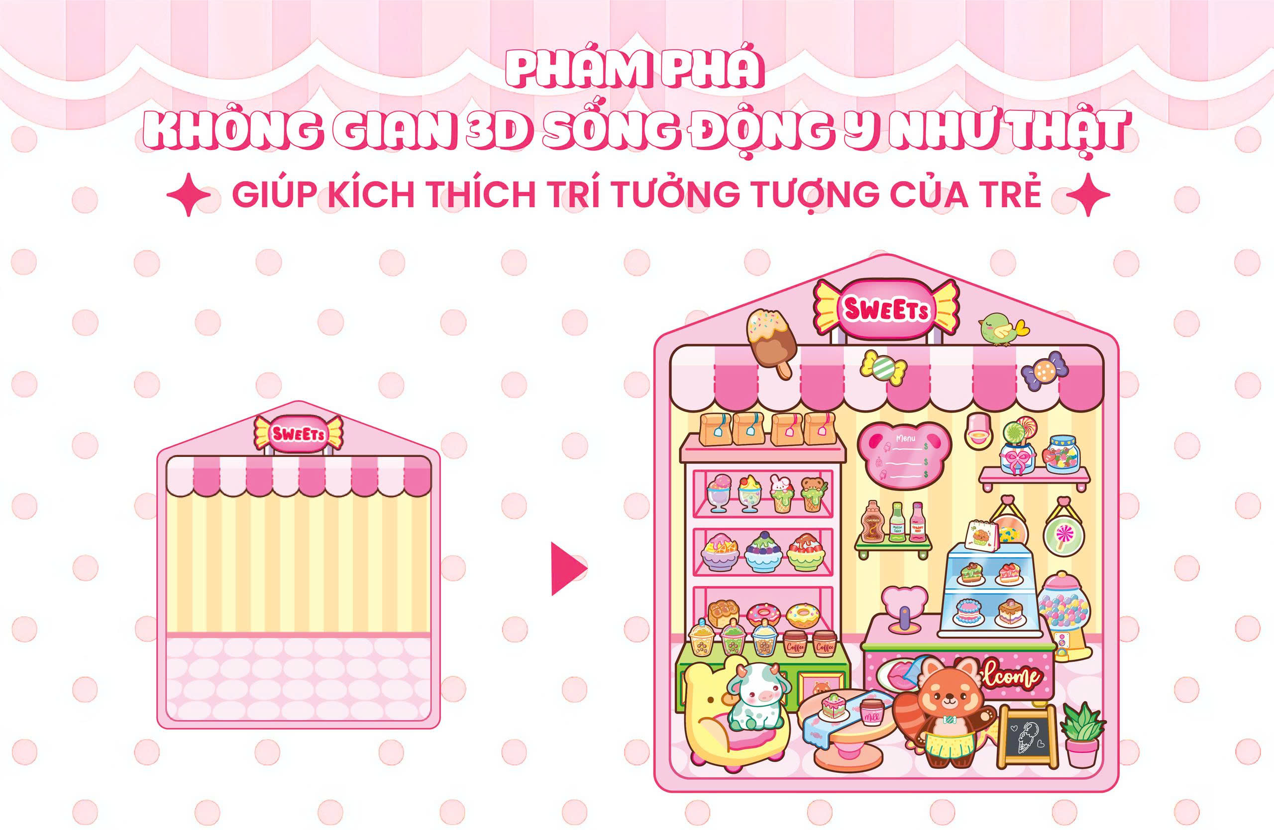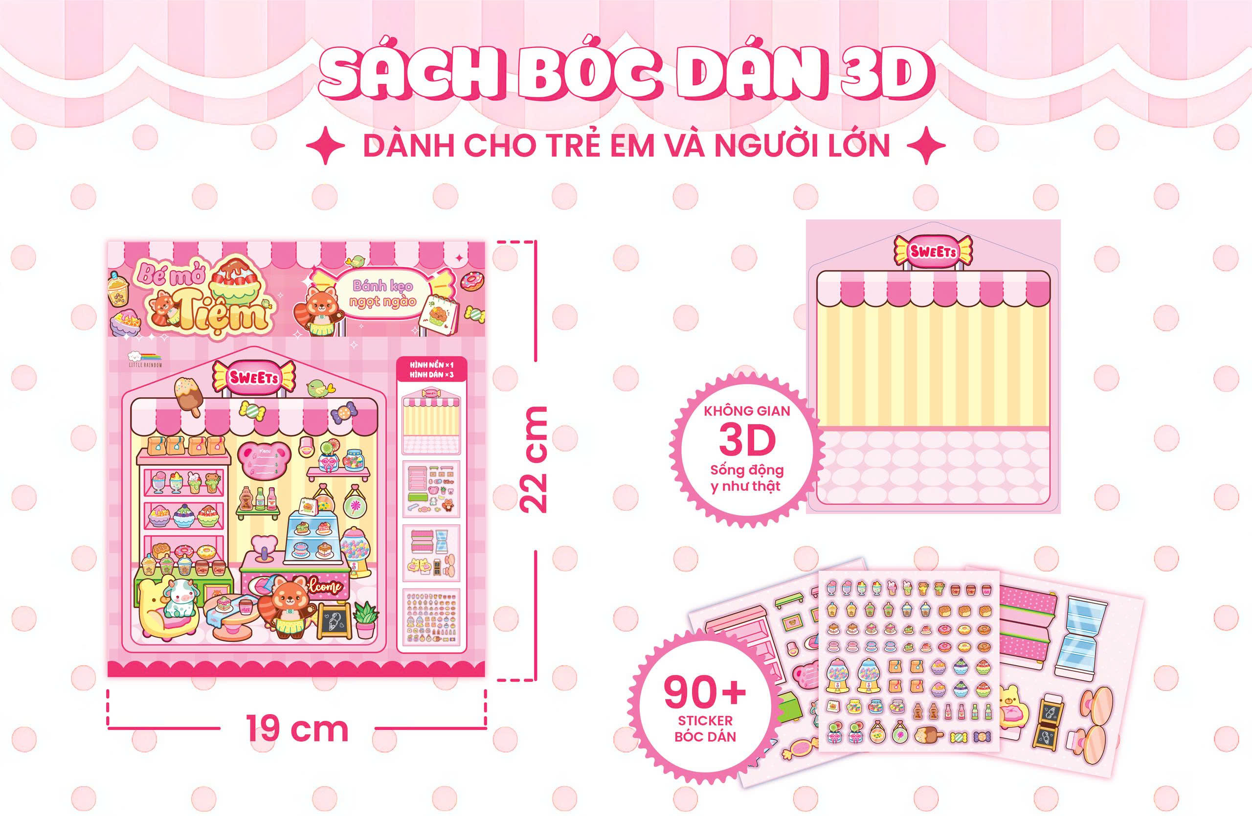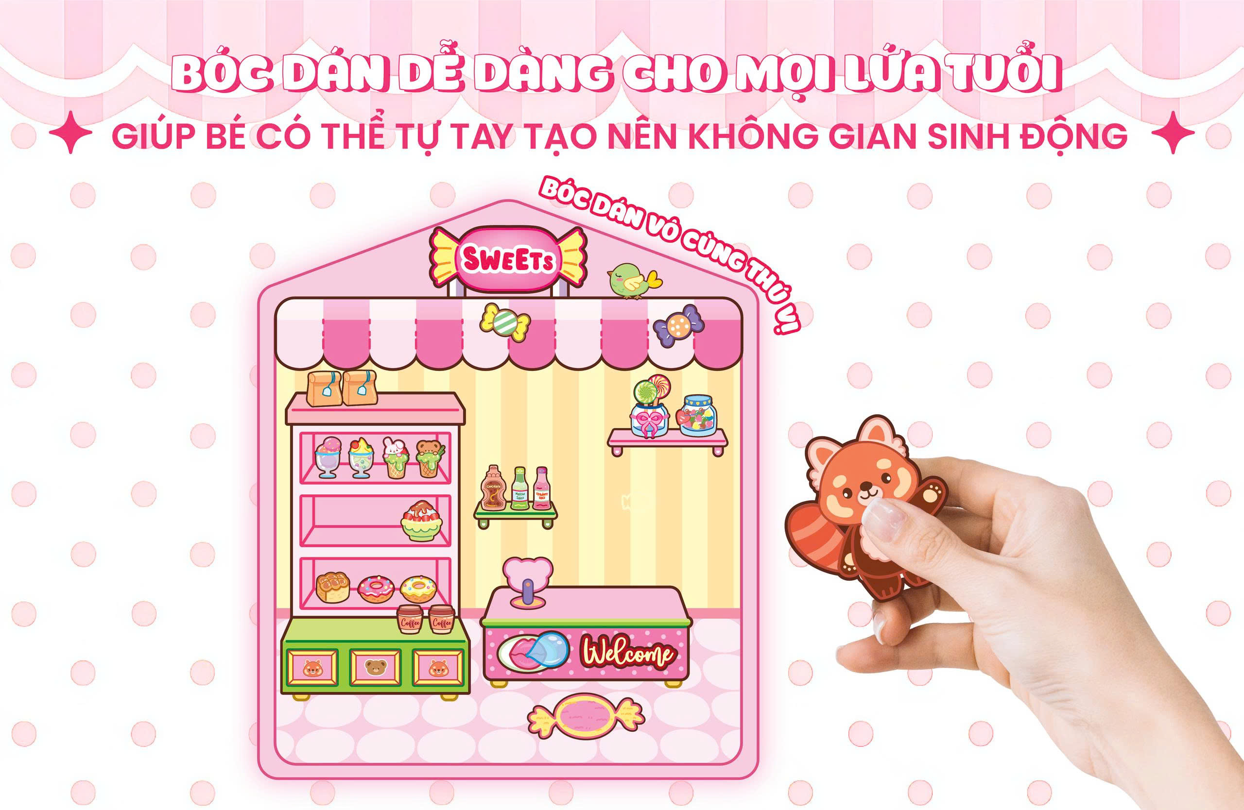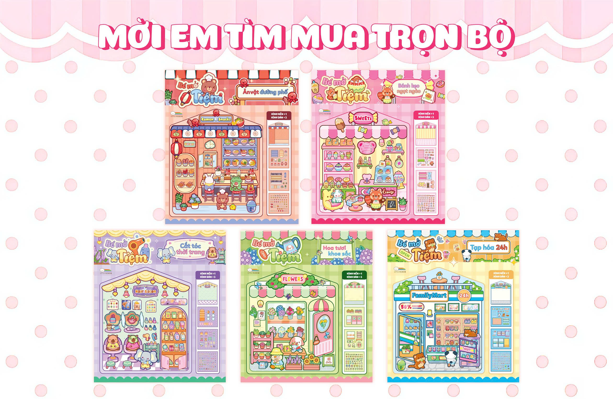 Mời bạn khám phá bộ Sách Bóc Dán Bé Mở Tiệm độc đáo, trò chơi nhập vai tuyệt vời cho mọi lứa tuổi! Bộ sách gồm 5 cuốn với 5 chủ đề siêu đáng yêu như Cắt tóc thời trang, Tạp hoá 24h, và Bánh kẹo ngọt ngào. Mỗi cuốn là một không gian 3D sống động, giúp bé tha hồ nhập vai thành cô/cậu chủ tài ba. Với hơn 90+ Sticker bóc dán trong suốt đi kèm, bé có thể tự tay trang trí, kiến tạo tiệm kinh doanh mơ ước.