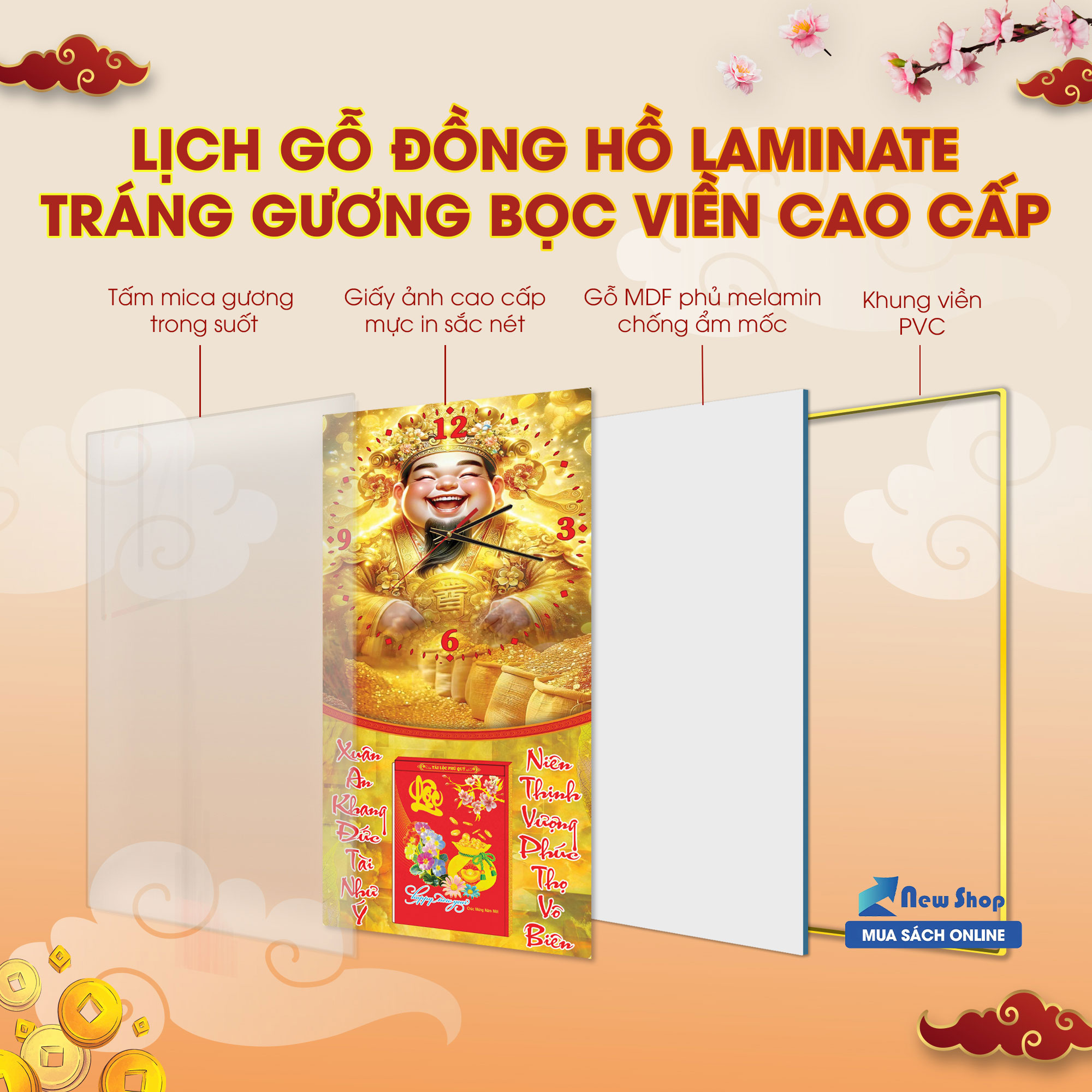 Lịch Gỗ Đồng Hồ Treo Tường Laminate Tráng Gương Bọc Viền Cao Cấp 2025 (39 x 79 cm) - Chữ Lộc (NSDH03) - In Quảng Cáo Logo Theo Yêu Cầu