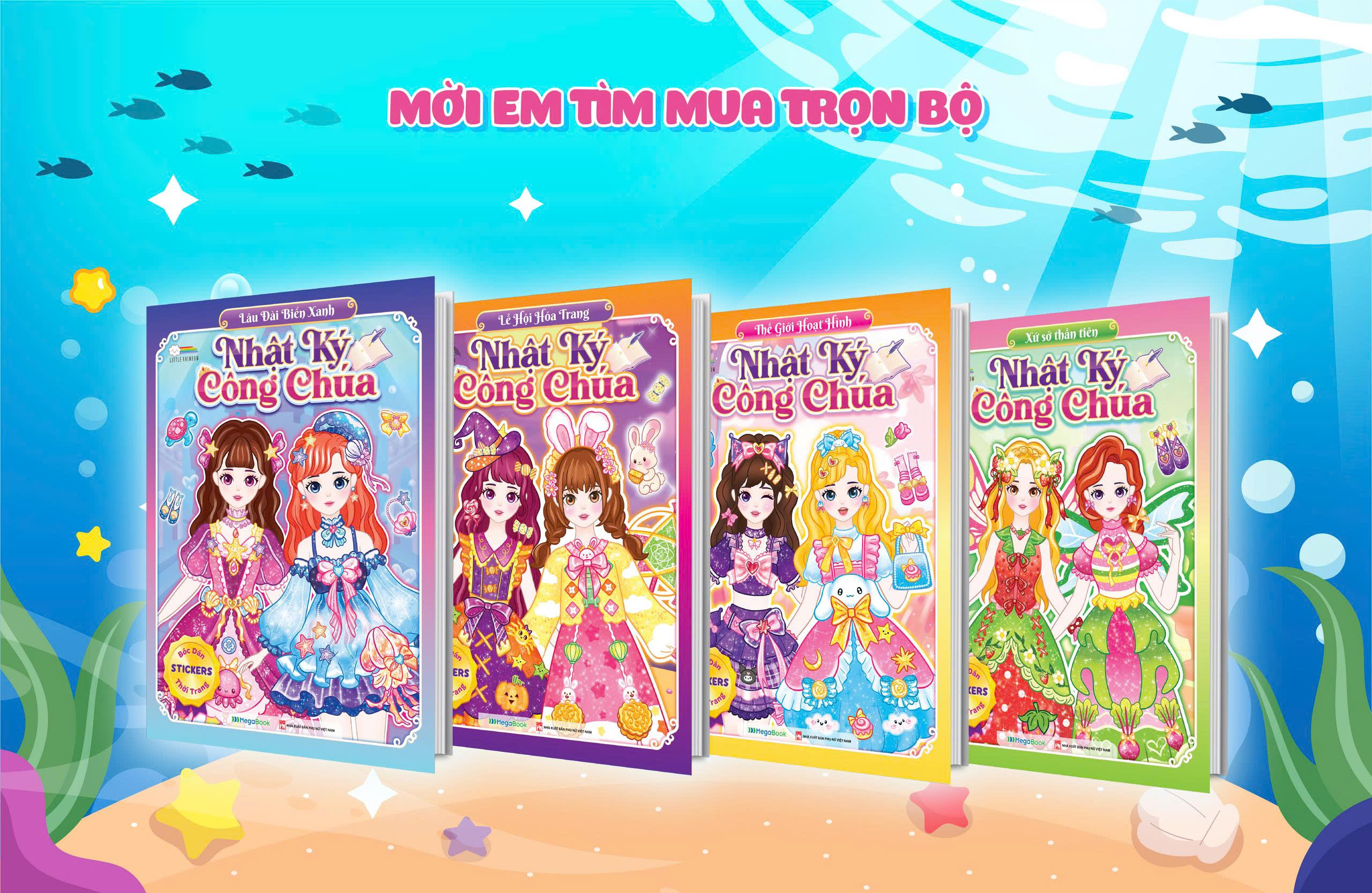 Bộ sách “Nhật ký công chúa” gồm 4 cuốn với các chủ đề: Lâu đài biển xanh, Lễ hội hóa trang, Xứ sở thần tiên, Thế giới hoạt hình. Mỗi cuốn mang đến một hành trình mới lạ, nơi bé gái có thể hóa thân thành các nhà thiết kế thời trang nhí với hơn 150 sticker để sáng tạo trang phục cho các nàng công chúa xinh đẹp. Không chỉ là trò chơi giải trí, bộ sách còn giúp bé phát huy trí tưởng tượng, rèn sự khéo léo và nuôi dưỡng tình yêu cái đẹp. Đây sẽ là món quà tuyệt vời dành cho những bé yêu thích thế giới công chúa lung linh, đầy màu sắc.