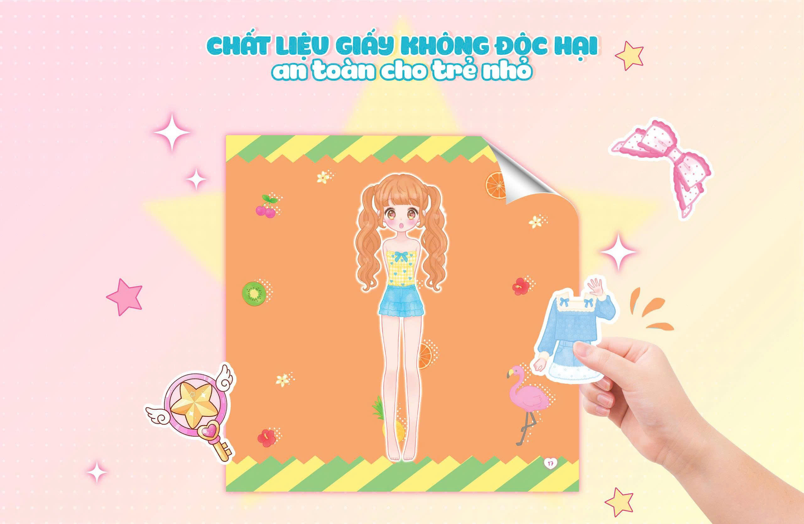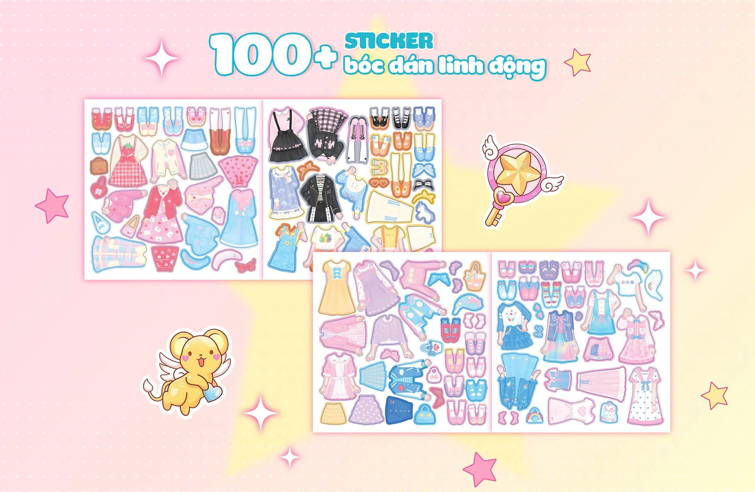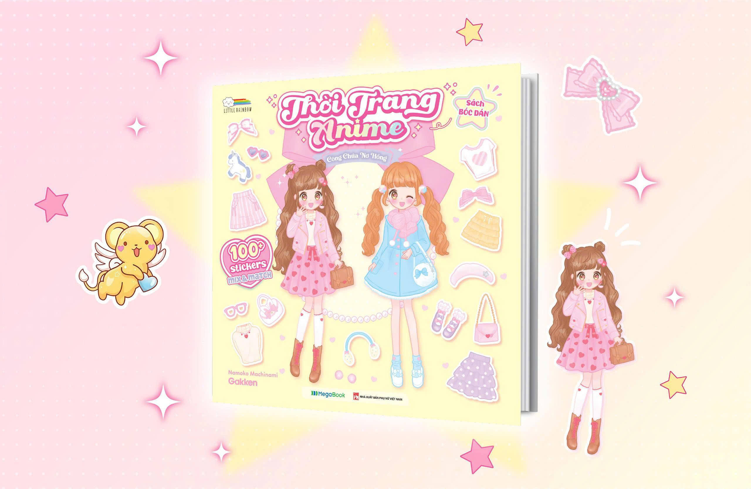 Thời Trang Anime - Công Chúa Nơ Hồng (100+ Stickers Dễ Thương) - Sách Bóc Dán Sticker Thời Trang Cho Bé Gái