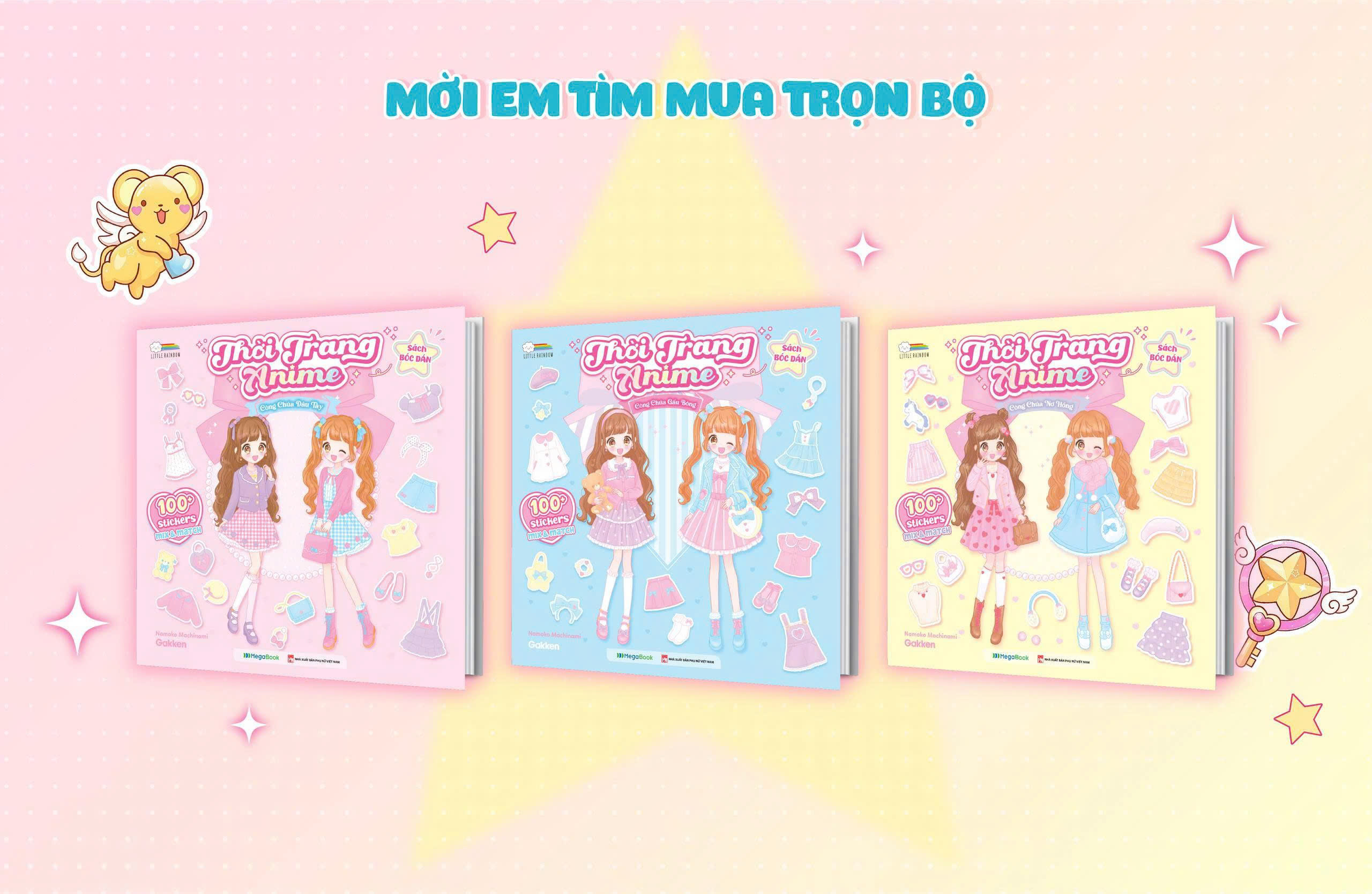 Bộ sách Thời trang Anime gồm 3 cuốn: Công chúa Dâu Tây, Công chúa Nơ Hồng, Công chúa Gấu Bông – mang đến thế giới công chúa lung linh cho bé gái. Với hơn 100 sticker thời trang cùng 10 nàng công chúa Anime trong mỗi cuốn, bé sẽ được thỏa sức kết hợp và phối các trang phục, tạo nên phong cách riêng cho công chúa của mình. Không chỉ là trò chơi giải trí thú vị, bộ sách còn giúp bé rèn luyện sự khéo léo, kích thích trí tưởng tượng và nuôi dưỡng tình yêu cái đẹp.