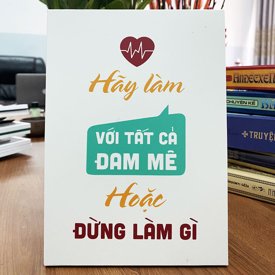 Tranh Để Bàn Hãy Làm Với Tất Cả Đam Mê Hoặc Đừng Làm Gì không chỉ mang đến sự mới lạ, độc đáo mà còn là một điểm nhấn sáng tạo nơi góc bàn làm việc.