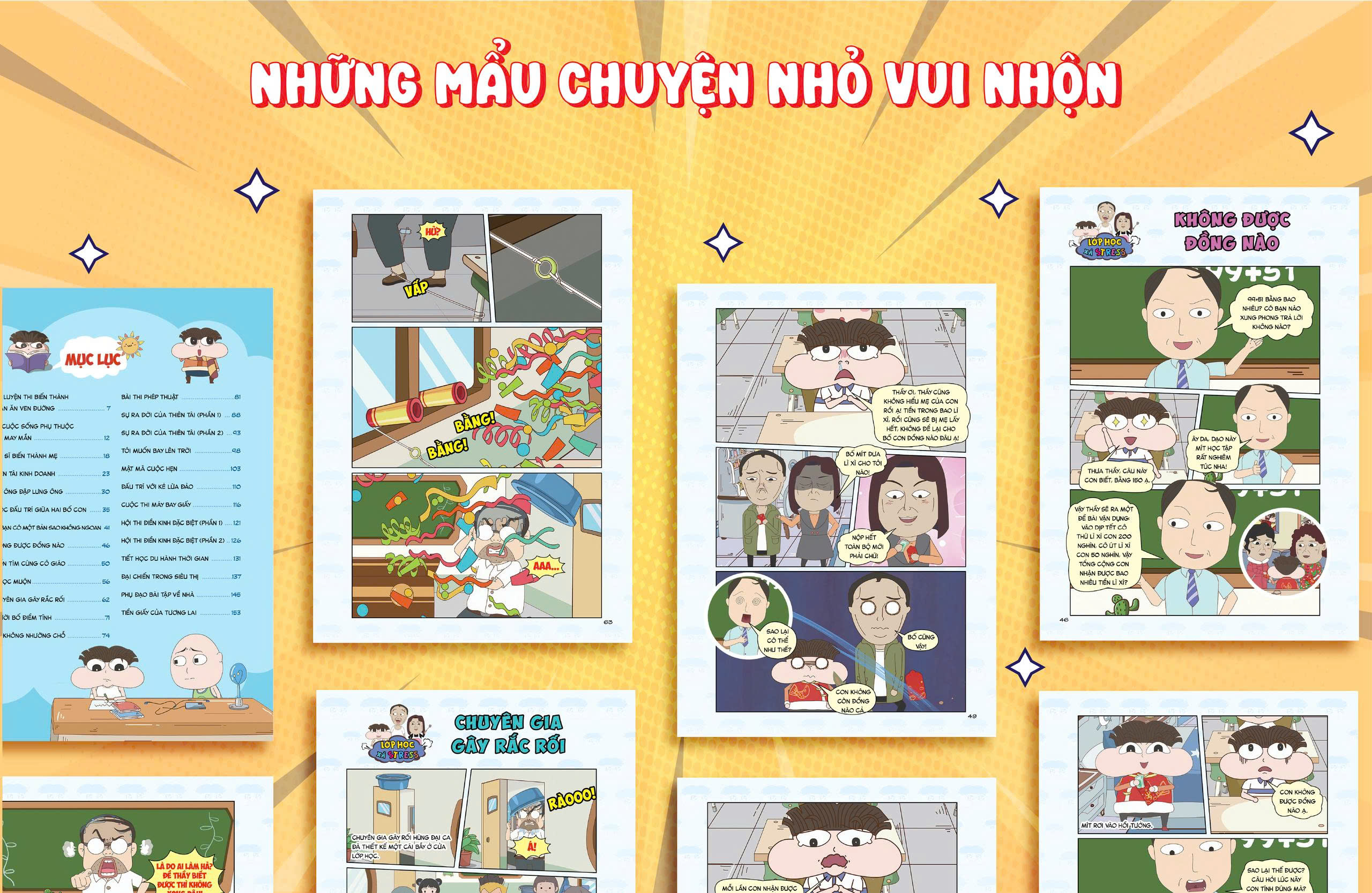 "Bộ truyện tranh Lớp học xả stress" là một tác phẩm sáng tạo và vui nhộn, dành cho độc giả của lứa tuổi học trò. Với nhân vật chính là cậu bé Mít và những câu chuyện xoay quanh cuộc sống thường ngày của cậu ấy cùng gia đình và bạn bè, cuốn sách mang đến những trải nghiệm đa màu sắc và hấp dẫn. Qua những tình huống hài hước và các câu chuyện ngắn dí dỏm, bộ truyện tranh Lớp học xả stress không chỉ mang tính giải trí giúp các bạn học sinh giải tỏa căng thẳng sau các giờ học tập mà còn mang những ý nghĩa nhân văn giáo dục trẻ em.