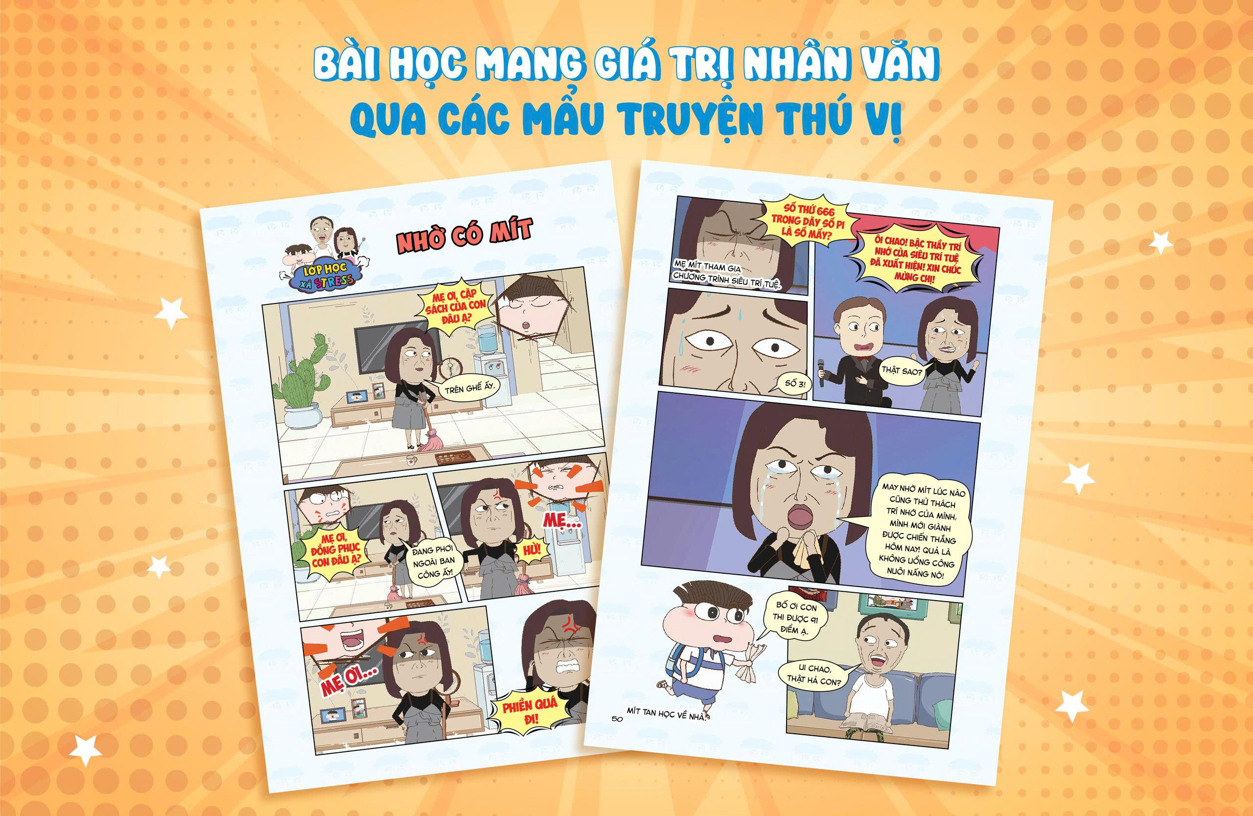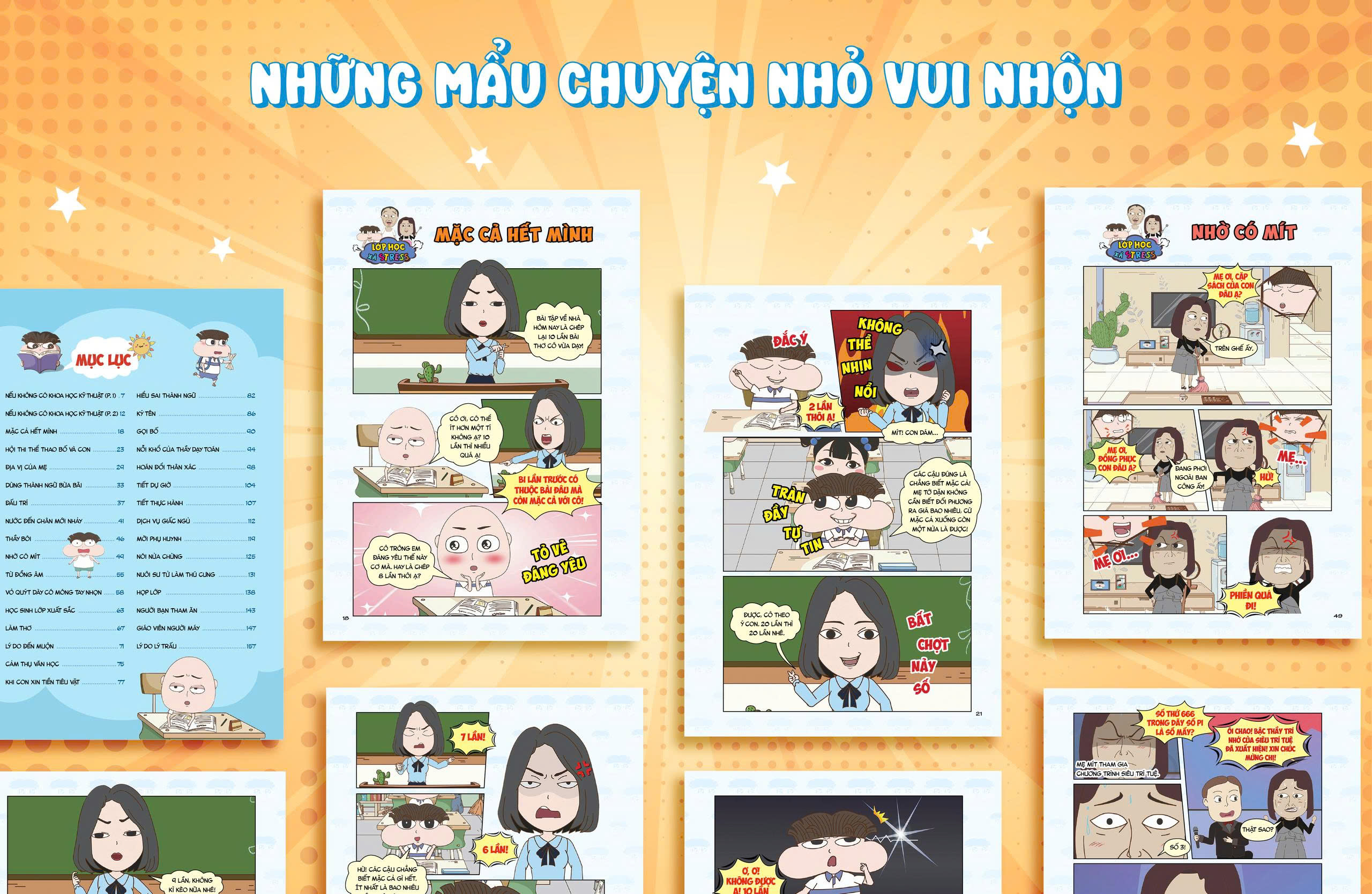 "Bộ truyện tranh Lớp học xả stress" là một tác phẩm sáng tạo và vui nhộn, dành cho độc giả của lứa tuổi học trò. Với nhân vật chính là cậu bé Mít và những câu chuyện xoay quanh cuộc sống thường ngày của cậu ấy cùng gia đình và bạn bè, cuốn sách mang đến những trải nghiệm đa màu sắc và hấp dẫn. Qua những tình huống hài hước và các câu chuyện ngắn dí dỏm, bộ truyện tranh Lớp học xả stress không chỉ mang tính giải trí giúp các bạn học sinh giải tỏa căng thẳng sau các giờ học tập mà còn mang những ý nghĩa nhân văn giáo dục trẻ em.